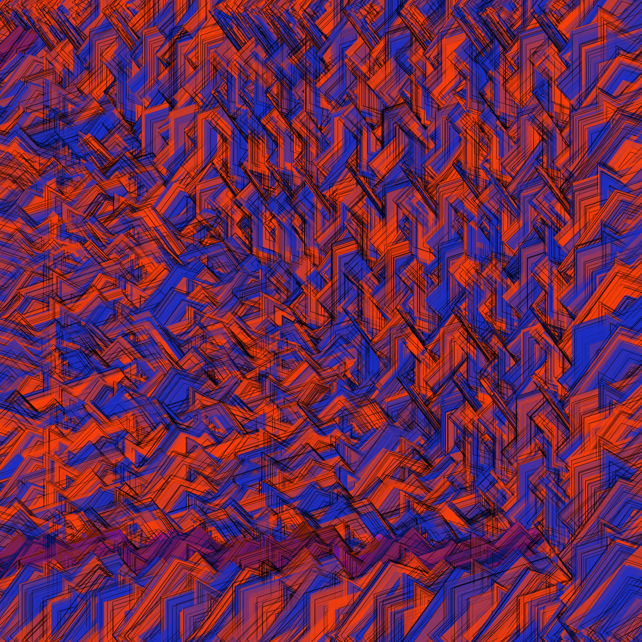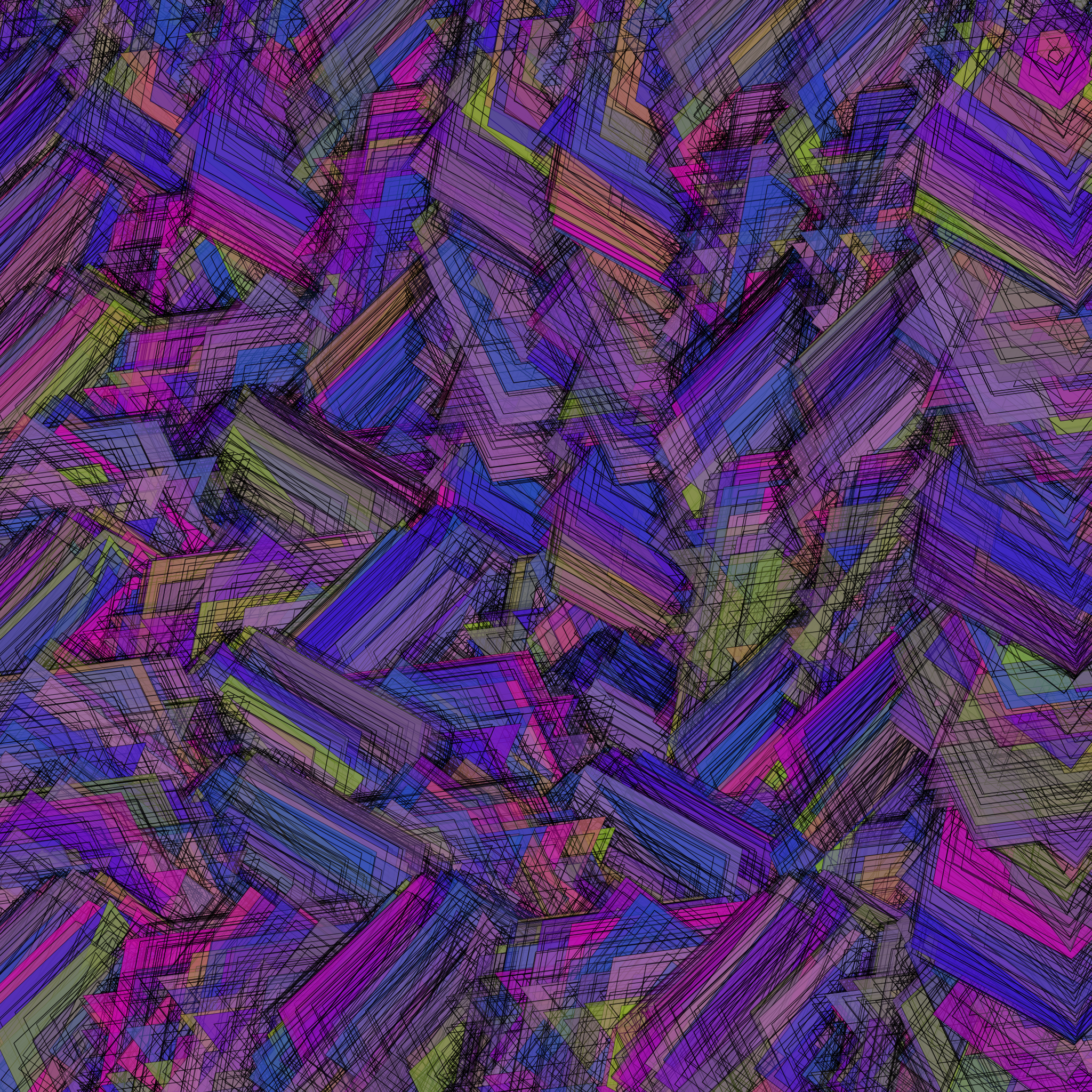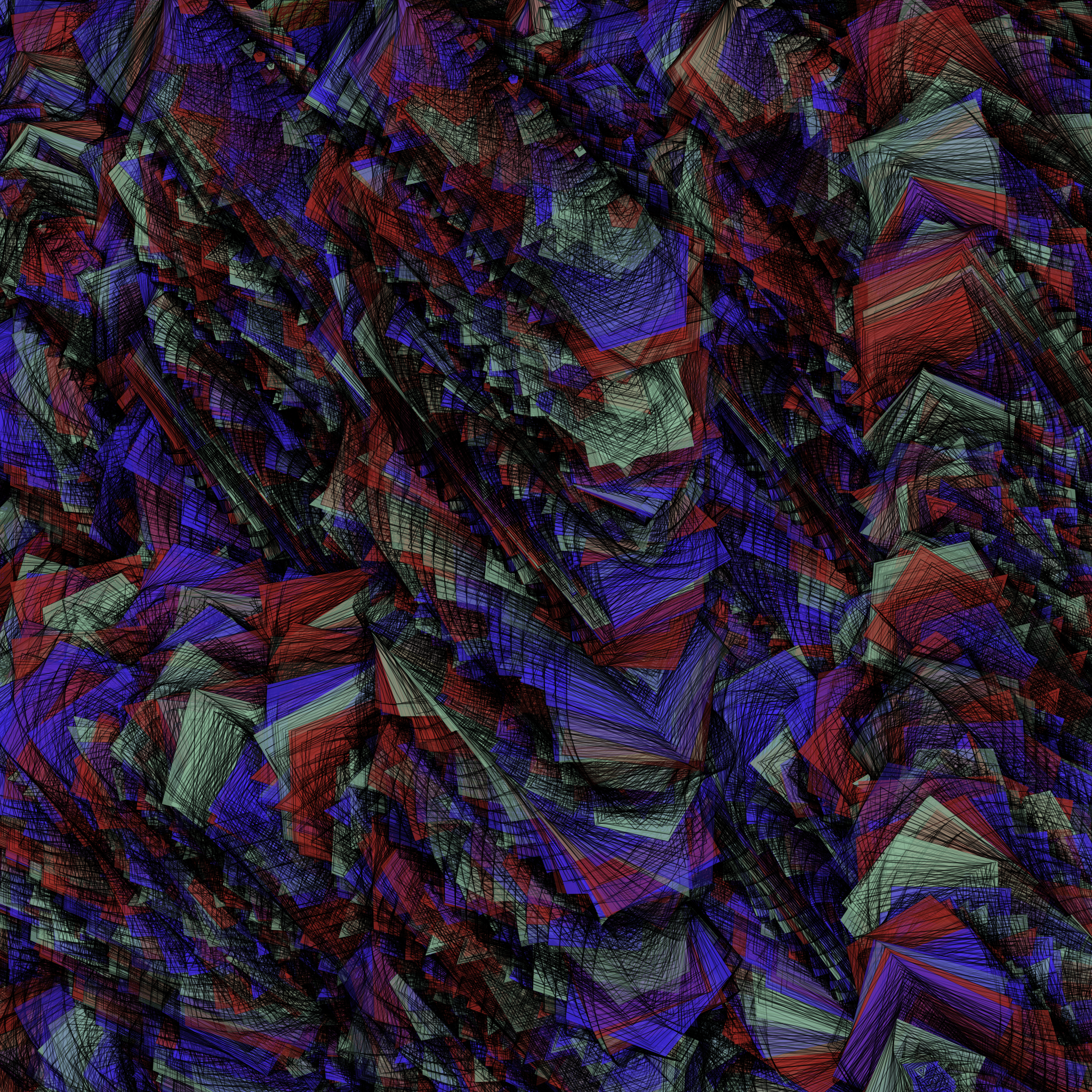 Unexpected output, generated while exploring the effects of drawing grid lines in different orders. Random, interleaving, rows first, columns first, etc.