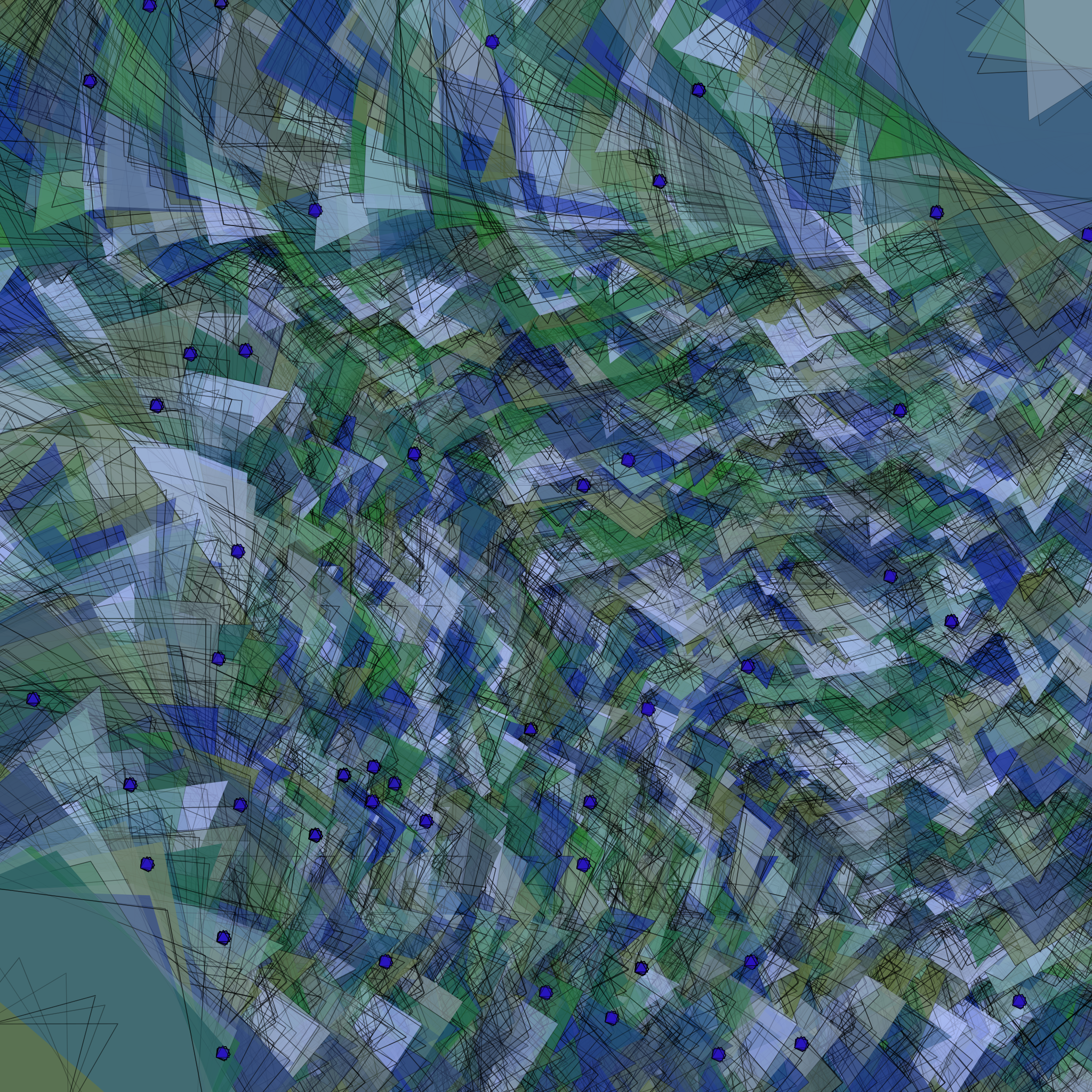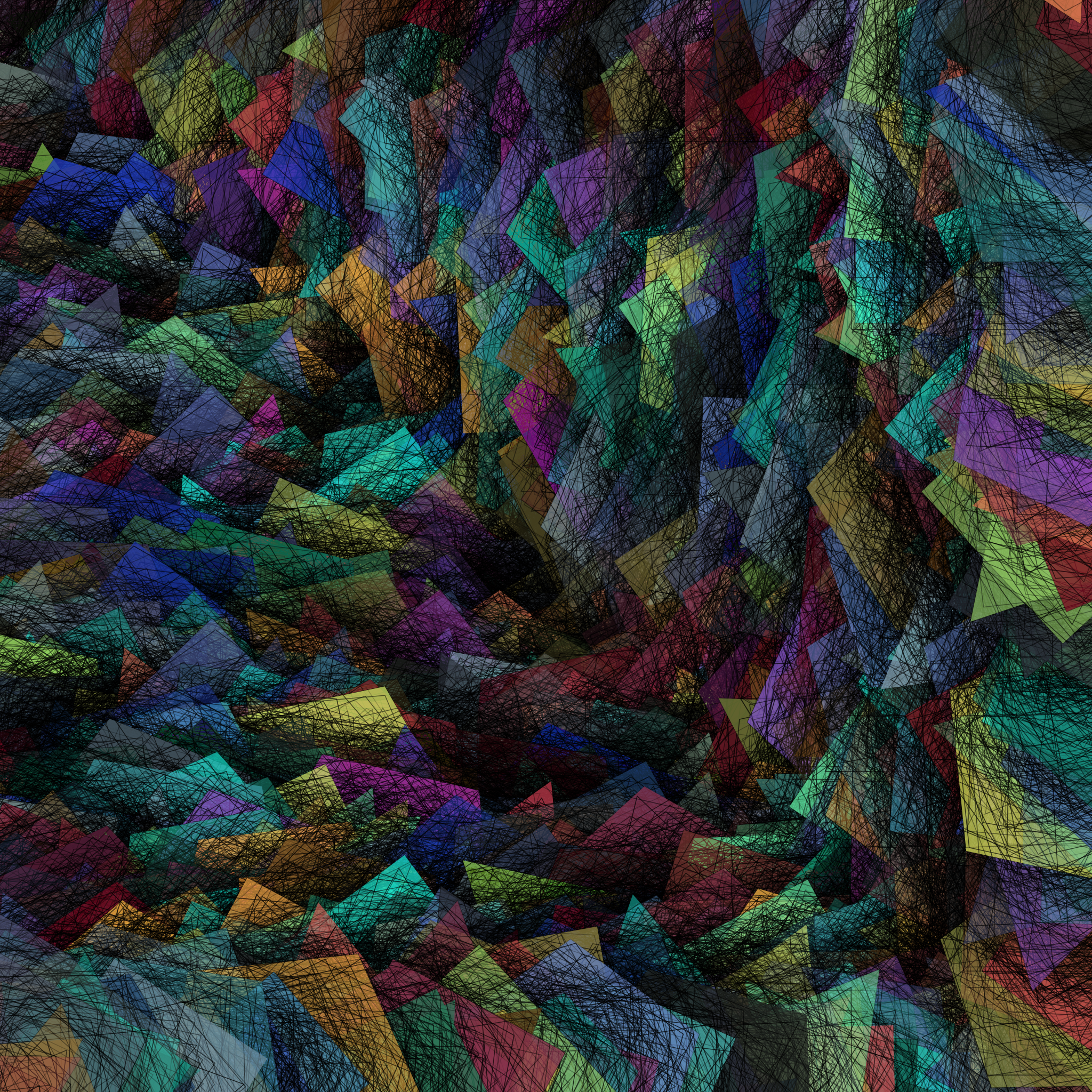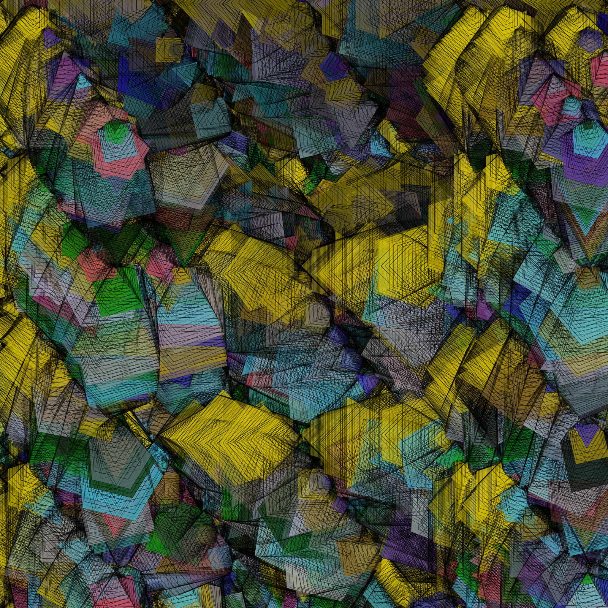 Unexpected output, generated while exploring the effects of drawing grid lines in different orders. Random, interleaving, rows first, columns first, etc.